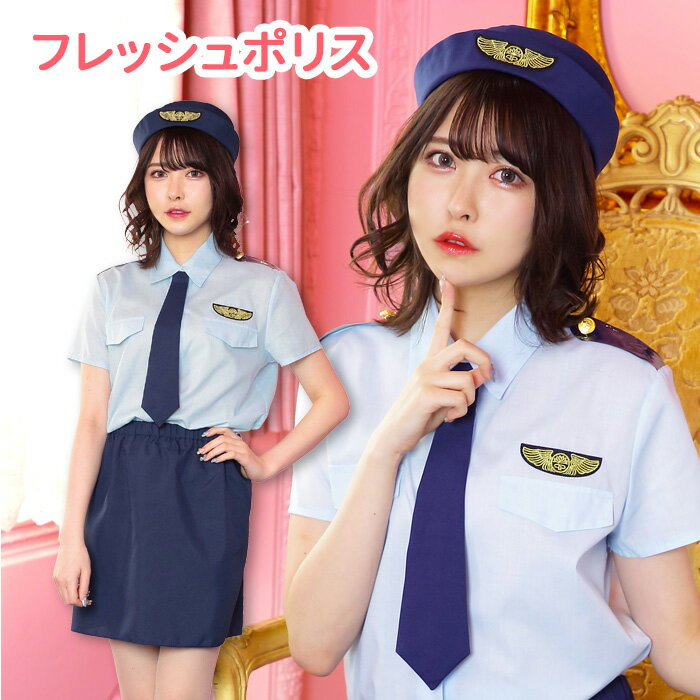 送料無料 フレッシュポリス ネイビー 紺 青 帽子 キャップ シャツ ネクタイ ミニ スカート タイト 警察 婦警 制服 胸あき ポリス 半袖 大人 セクシー かわいい ポリスコス 警察コス コス コスチューム ハロウィン コスプレ 宴会 忘年会 仮装 衣装 レディース 女性 s-cs-6j823
