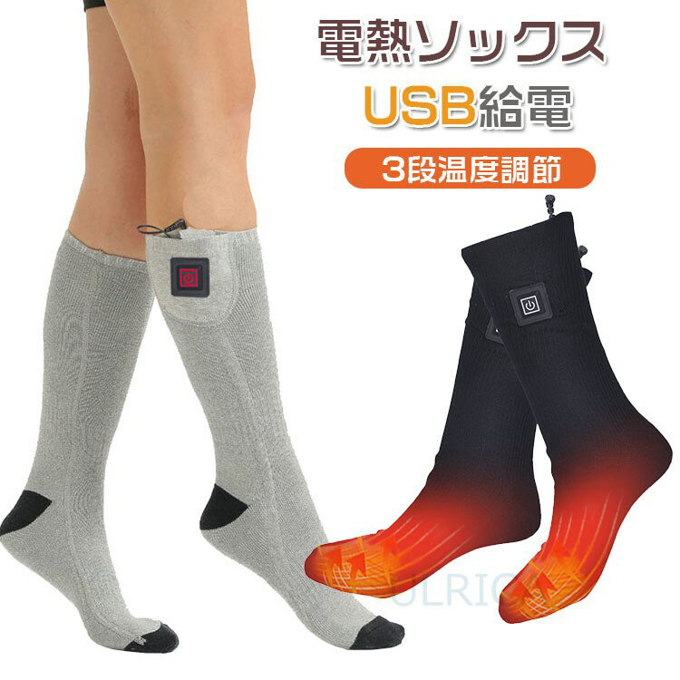 電熱ソックス 発熱ソックス ヒーター靴下 充電式 防寒ソックス 冬用 3段階調温男女 兼用 スキー 釣り サイクリング 防寒対策 あったか靴下 2カラー グレー ブラック くつ下 暖かい靴下 ソックス 秋冬 発熱靴下 冷え対策 防寒