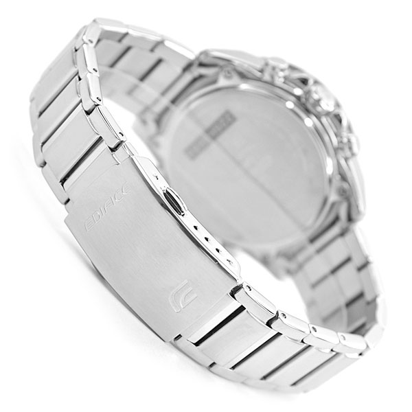 対応端末及び最新情報はEDIFICE公式サイトをご参照ください)仕様ワンプッシュ三つ折れ式中留タキメーター10気圧防水タフソーラー(ソーラー充電システム)モバイルリンク機能(対応携帯電話とのBluetoothR通信による機能連動)ワールドタイム:世界39都市(39タイムゾーン、サマータイム自動設定機能付き)+UTC(協定世界時)の時刻表示、ホームタイムの都市入替機能付きストップウオッチ(1/1000秒(1時間未満)/1/10秒(1時間以上)、24時間計、速度計測機能(MAX400unit /h)、計測データを最大200本メモリー(計測月・日・時・分、ラップタイム)タイマー(セット単位:1秒、最大セット:24時間、1/10秒単位で計測)マルチアラーム5本(DAILY、1TIME、SCHEDULE)・時報バッテリーインジケーター表示パワーセービング機能(暗所では一定時間が経過すると運針を停止して節電します)フルオートカレンダー12/24時間制表示切替操作音ON/OFF切替機能針退避機能ダブルLEDライト:文字板用LEDライト(フルオートライト、スーパーイルミネーター、残照機能、残照時間切替(1.5秒/3秒)付き)、LCD部用LEDバックライト(フルオートライト、スーパーイルミネーター、残照機能、残照時間切替(1.5秒/3秒)付き)フル充電時からソーラー発電無しの状態での駆動時間機能使用の場合:約6ヵ月パワーセービング状態の場合:約19ヵ月※ スマートフォンと連携しない場合は、通常のクオーツ精度(平均月差±15秒)で動作します。