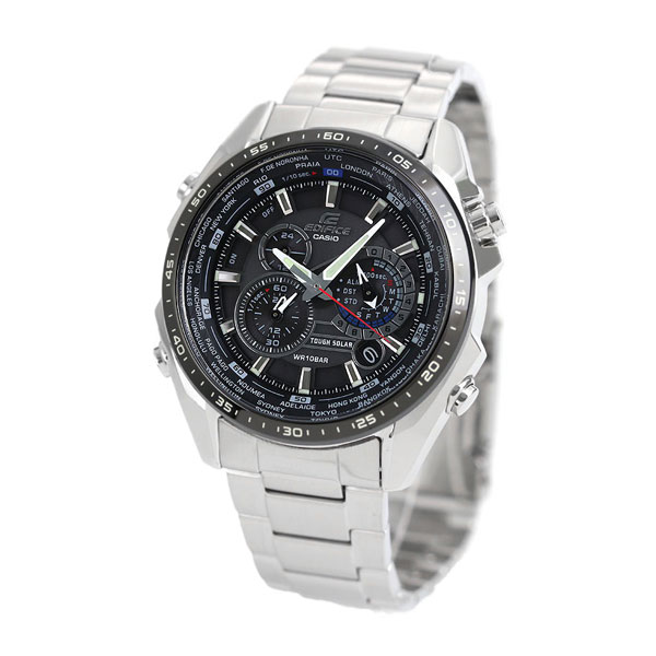 国内モデル品番:EQS-500DB-1A1JF品番EQS-500DB-1A1DR駆動方式ソーラー素材:ケースステンレススチール素材:ベルトステンレススチール(無垢/Cリング)風防無機ガラス文字盤カラーブラックベルトカラーシルバーサイズ(縦×横×厚)約50×45.8×12.3mm重さ約164g仕様・ネオブライト・100m防水・ワールドタイム:世界29都市(29タイムゾーン、サマータイム自動設定機能付き)・ストップウオッチ(1/100秒)・アラーム・フルオートカレンダー(2099年まで)・精度:平均月差±15秒付属品取扱説明書兼保証書(英字)スペシャルパッケージ保証当店にて一年保証CASIO EDIFICE の商品一覧はこちら♪