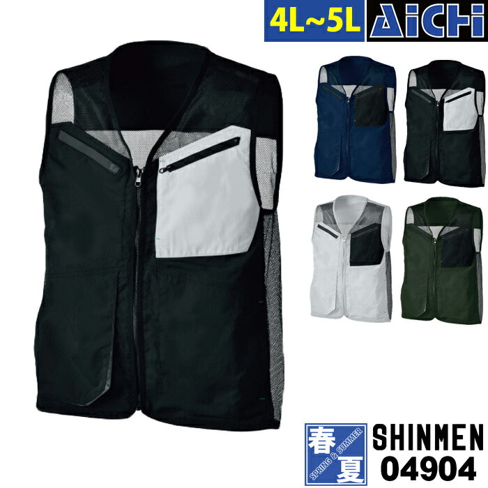 [メール便-送料無料] SHINMEN シンメン 作業服 04904 エア ストレッチ ドライ ベスト 春夏 4L 〜 5L | 上着 作業着 軽量 吸汗速乾 黒 紺 グレー カーキ 大きいサイズ