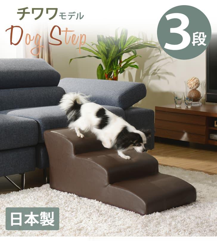 安心の日本製チワワにオススメ! 商品詳細 商品仕様商品名 「ドッグステップ」3段 チワワモデルサイズ:約 幅405×奥行き810×高さ340mm重量:約3.6kg梱包サイズ:400×330×820mmクッション材:ウレタン生地:合成皮革(ポリエステル100%)製造国:日本送料無料 色/サイズ等 PVCブラウン 送料/納期 無料※沖縄・離島はお受けできません。