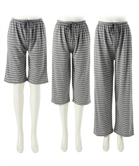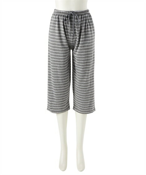パジャマ ボトムス レディース 綿混 ルーム 7分丈 パンツ 2枚組 ルームウエア ボーダー/無地 M/L ニッセン nissen