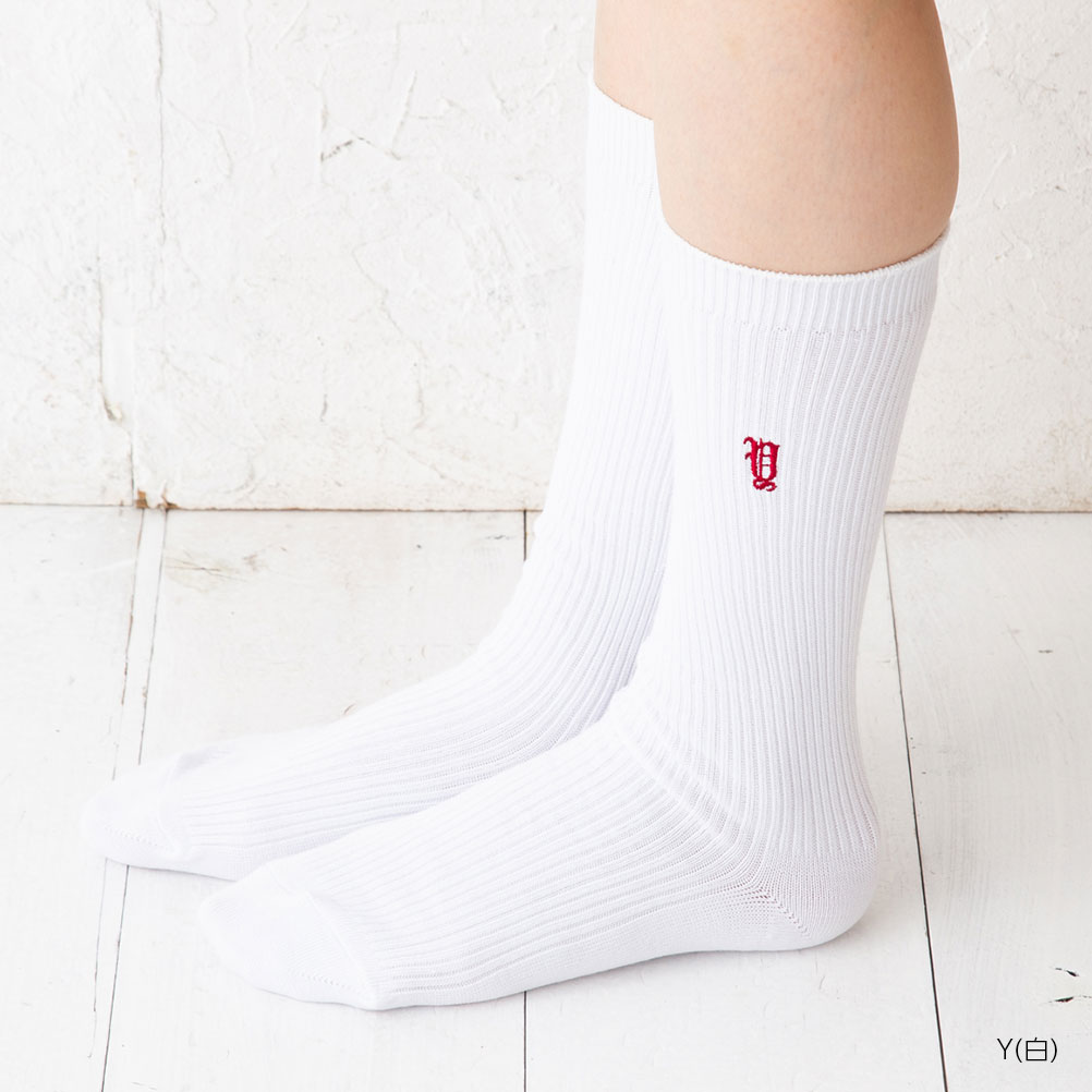 *.:*: 「全26アルファベットのイニシャルスクールソックス」自分のイニシャルが必ずある! ワンポイント刺繍の字体はかっこいいオールドイングリッシュを使用 両面刺繍だから長持ちで家計にも優しい。