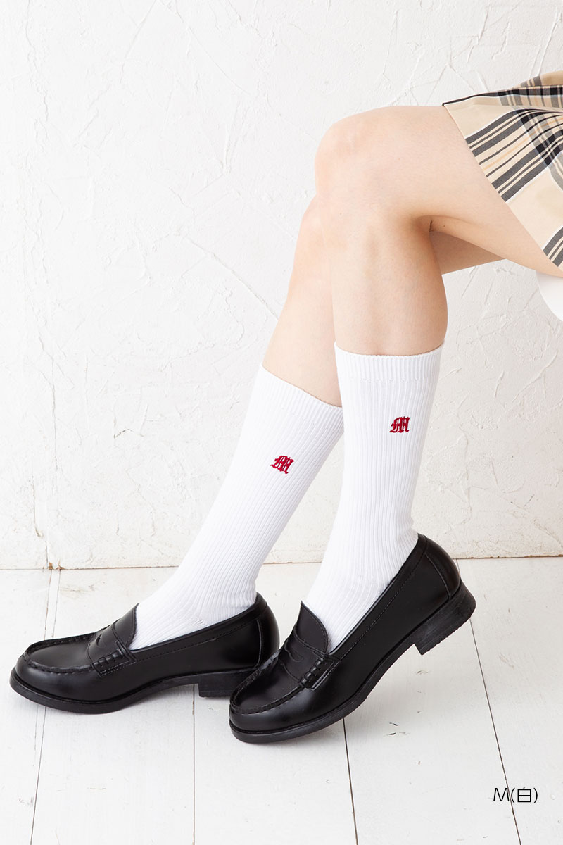あなたのイニシャルソックスで学校生活を楽しもう! ◆商品仕様◆ 素材: 綿・ポリエステル・ポリウレタン サイズ: 23-25cm 丈の長さ: 28cm丈 カラー: ネイビー(刺繍色エンジ)・ホワイト(刺繍色エンジ) 生産国: 中国 ※画面上と実物では、多少色具合が異なって見える場合がございます。