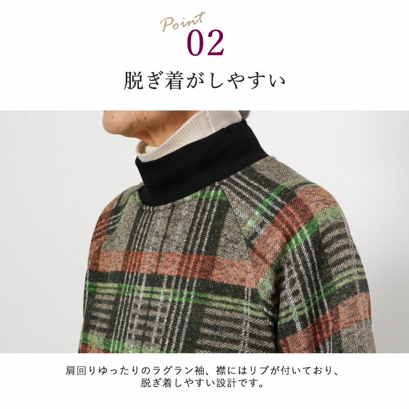 シニアファッション レディース 80代 70代 60代 90代 秋冬 裏起毛 チェック柄 プルオーバー チュニック おばあちゃん 服 婦人服 女性 ミセス 祖母 お年寄り 老人 高齢者 プレゼント 実用的 敬老の日 プレゼント ギフト