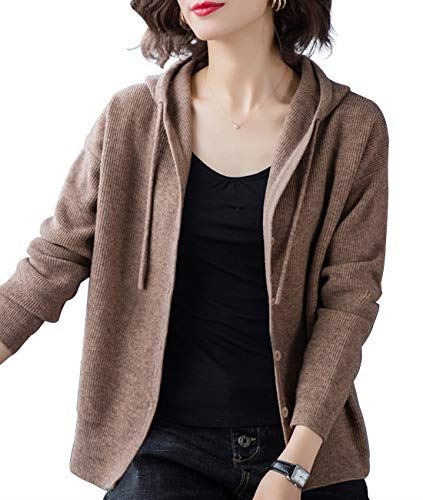 (スイーヤ) カーディガン レディース ニット セーター シンプル フード付き 保温 体型カバー お洒落 リブ リボン エレガント トップス カットソー 通勤 普段着 スポーツ 秋 冬 コーヒ