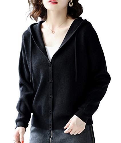 (スイーヤ) カーディガン レディース ニット セーター シンプル フード付き 保温 体型カバー お洒落 リブ リボン エレガント トップス カットソー 通勤 普段着 スポーツ 秋 冬 ブラック