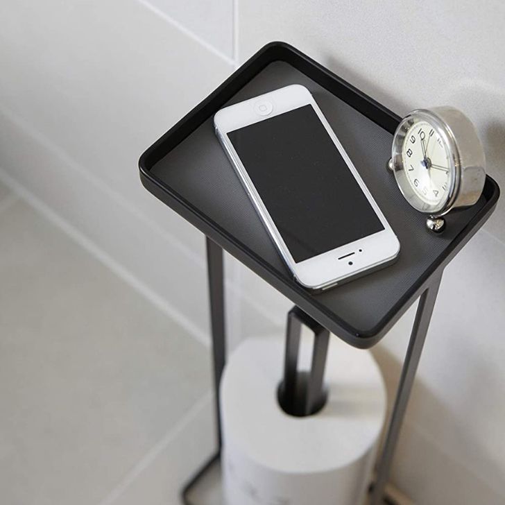小物がおけるトレイが付いたトイレットペーパースタンド