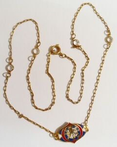 【送料無料】ジュエリー・アクセサリー チェーンネックレスメダルエナメルヴィンテージゴールドカラーcollier chaine medaille cerf email bijou vintage couleur or * 2919