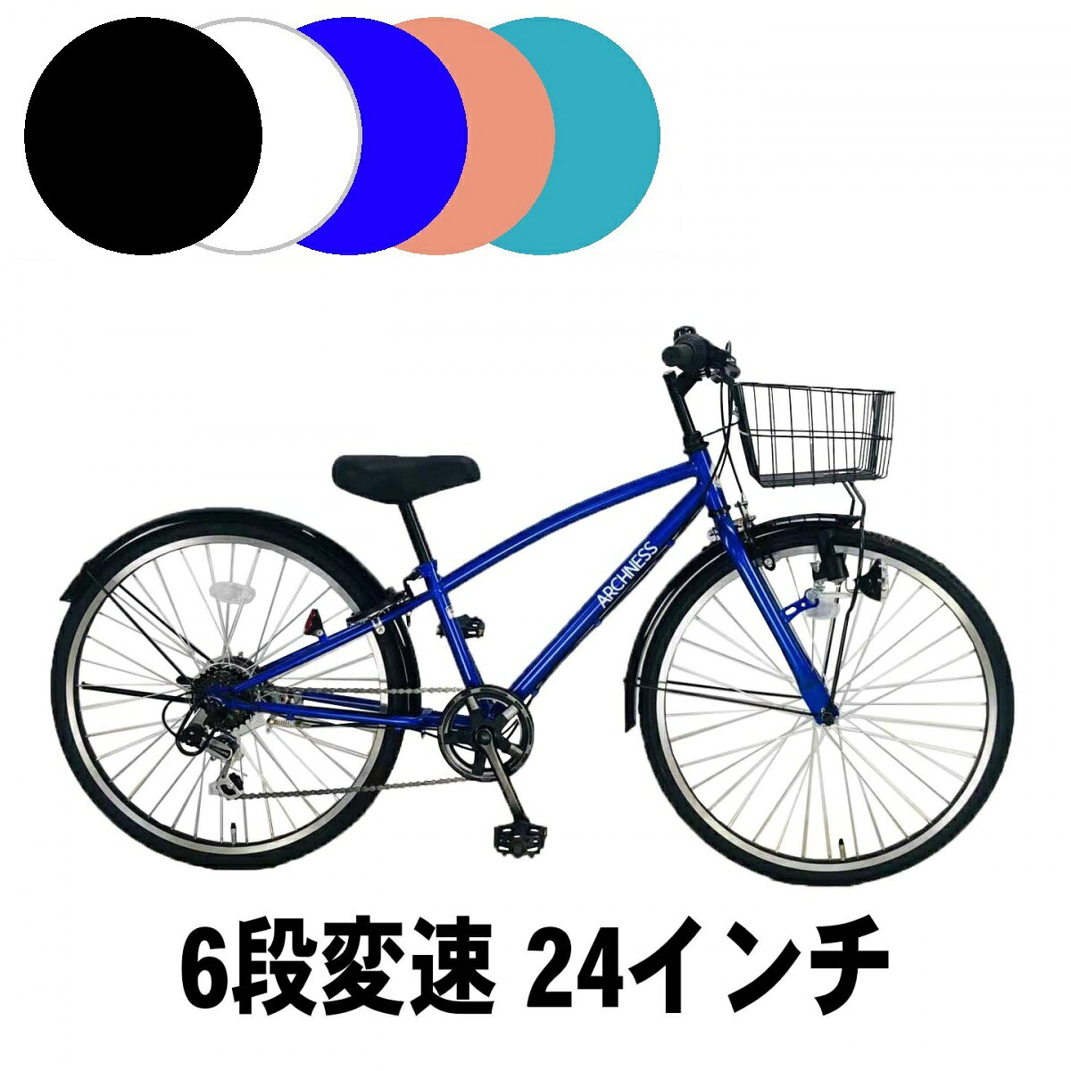 自転車 シティサイクル クロスバイク キッズ ジュニア 24インチ シマノ 6段変速 ギヤ カゴ ライト 鍵 おしゃれ アイトン 本州 送料無料 ARCHNESS CRB246
